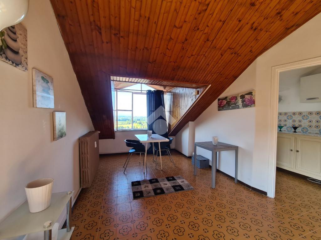 Mansarda situata al terzo ed ultimo piano senza ascensore, di una palazzina tranquilla composta da otto alloggi. L’appartamento è luminoso e gode di una piacevole vista panoramica. Internamente è composto da ingresso, zona giorno, cucinotto, camera da letto matrimoniale e bagno finestrato. Completa la proprietà una cantina ed un posto auto interno cortile.