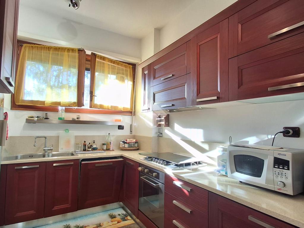 L’abitazione è luminosa e ben distribuita, con due balconi che offrono una piacevole vista panoramica. La zona giorno comprende un ampio soggiorno con affaccio sul balcone e una cucina semi abitabile dotata di tapparelle elettriche; per chi lo desidera, è possibile unire i due ambienti e creare un unico spazio living moderno e funzionale.