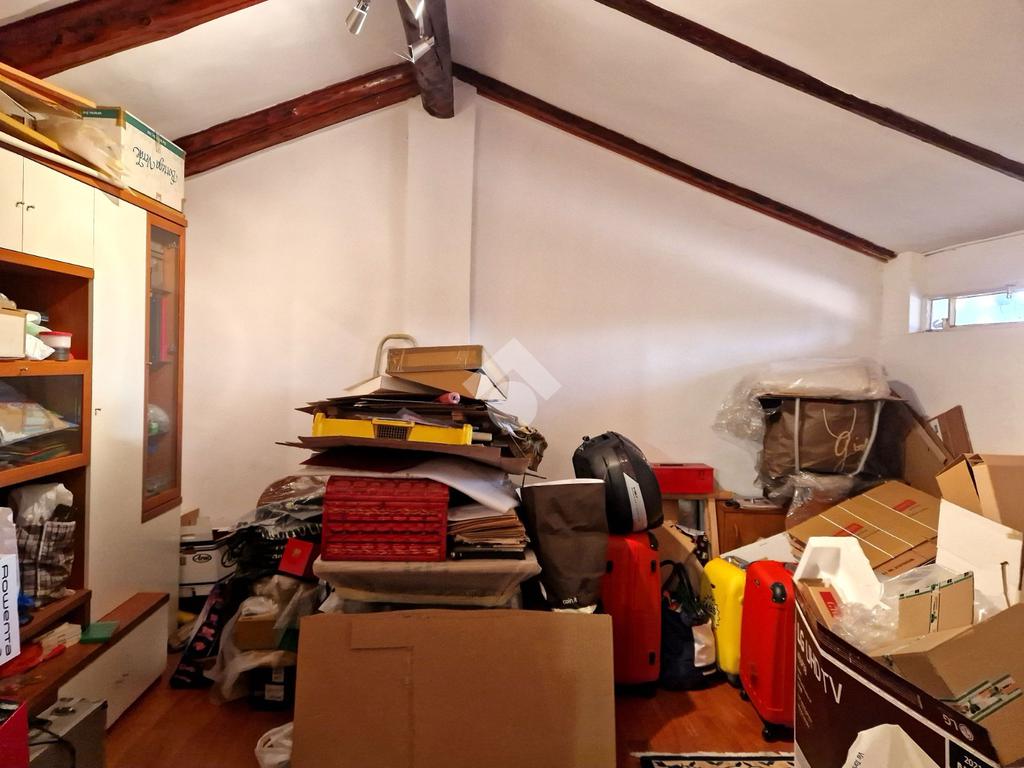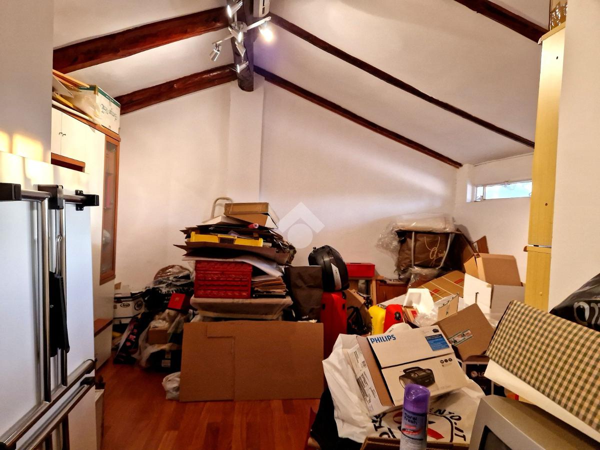 Completano la proprietà un sottotetto di pertinenza, attualmente accessibile dal vano scala condominiale, una cantina e un posto auto coperto nella rimessa condominiale ad € 7.000,00