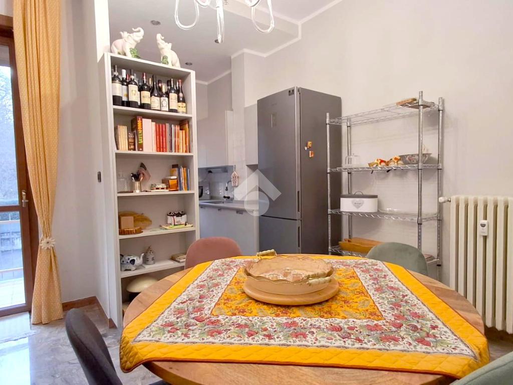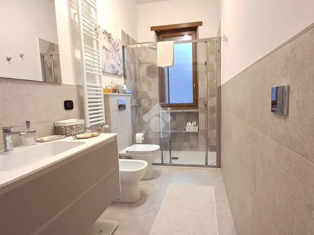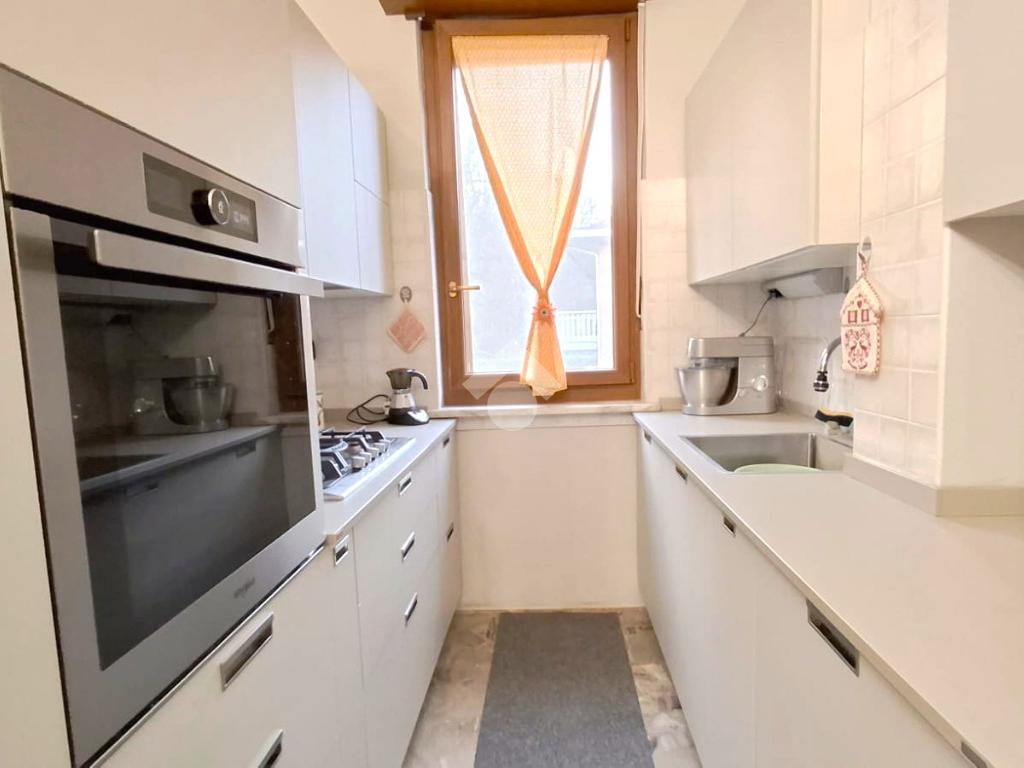 Il riscaldamento è centralizzato con termovalvole e la caldaia condominiale è stata sostituita di recente. Gli infissi sono dotati di zanzariere e i balconi dispongono di tende da sole. La cucina e gli arredi dei bagni restano compresi nella vendita, rendendo l’abitazione subito fruibile.
