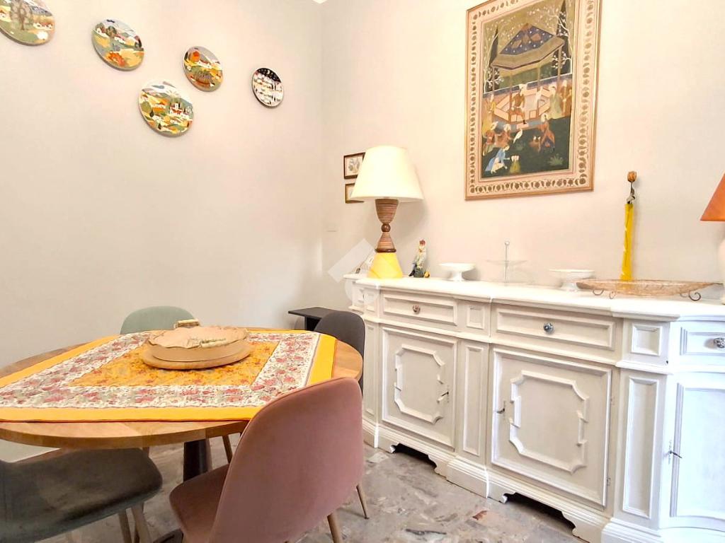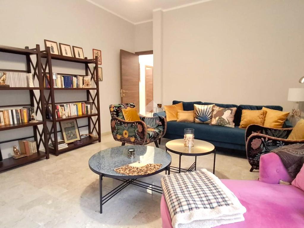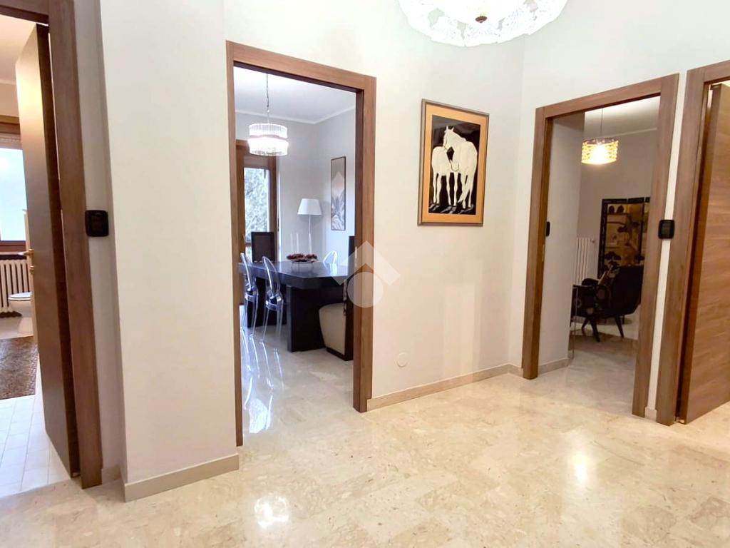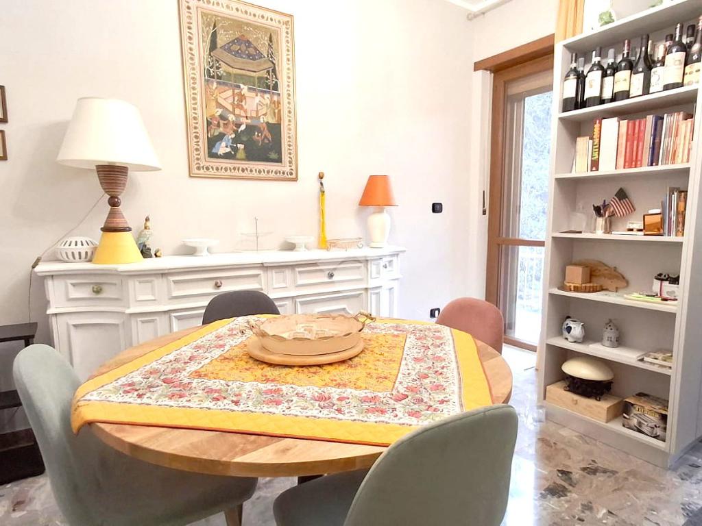 L’ingresso si apre su un disimpegno che separa in modo funzionale la zona giorno da quella notte. Da una parte si sviluppano la cucina abitabile e il soggiorno, entrambi ambienti luminosi e di comode dimensioni; dall’altra si trovano due camere da letto, una delle quali attualmente utilizzata come sala da pranzo, oltre ai due bagni ristrutturati, uno con vasca e l’altro con doccia. Un pratico ripostiglio completa la disposizione interna.