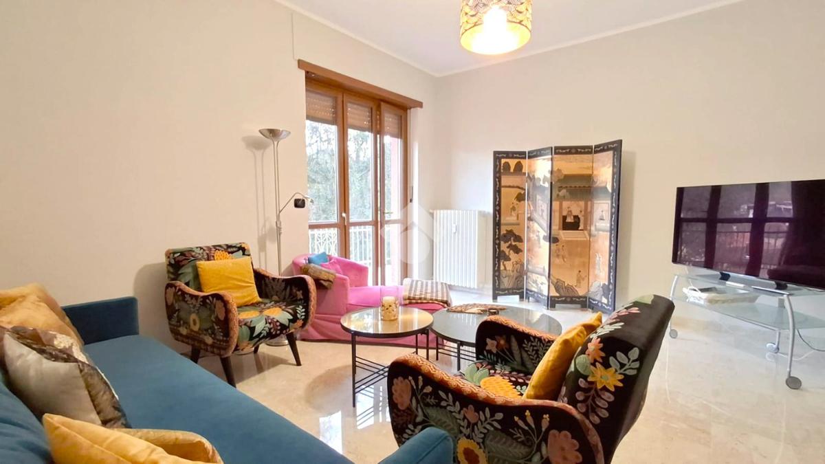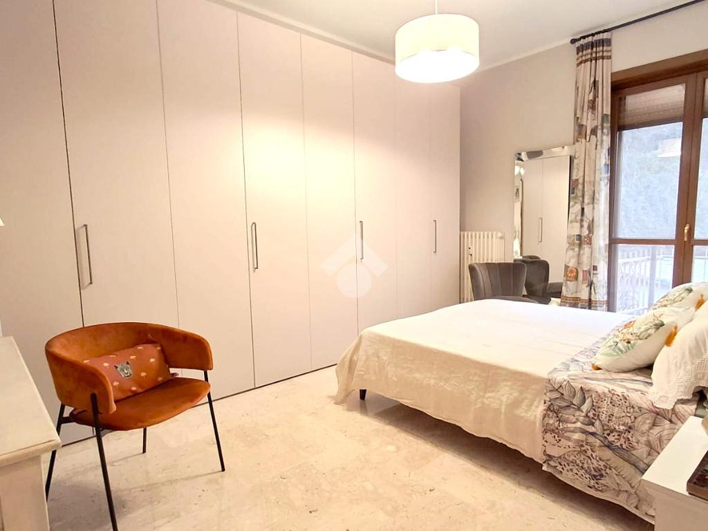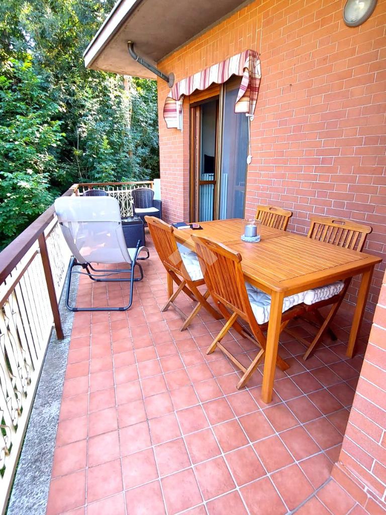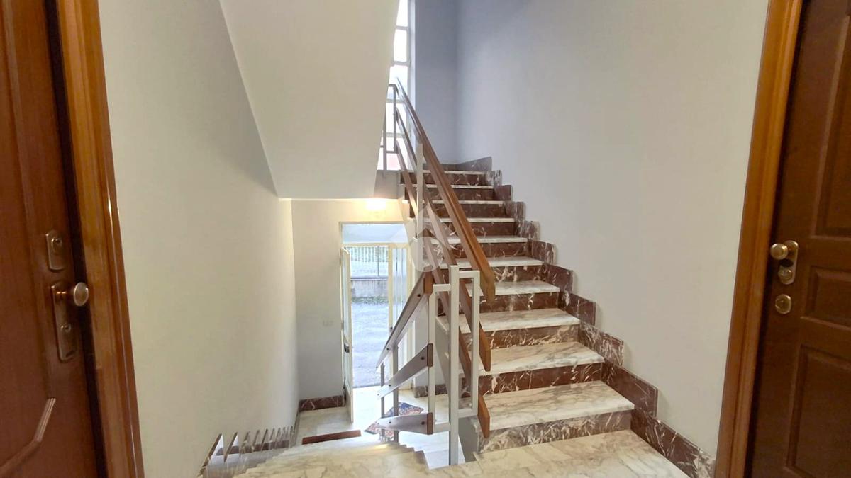 La casa conserva l’eleganza dei pavimenti originali in marmo, riportati a nuovo durante la ristrutturazione. All’esterno sono presenti un balcone e un ampio terrazzo con affaccio sul verde, perfetti per momenti di relax o per mangiare all’aperto.