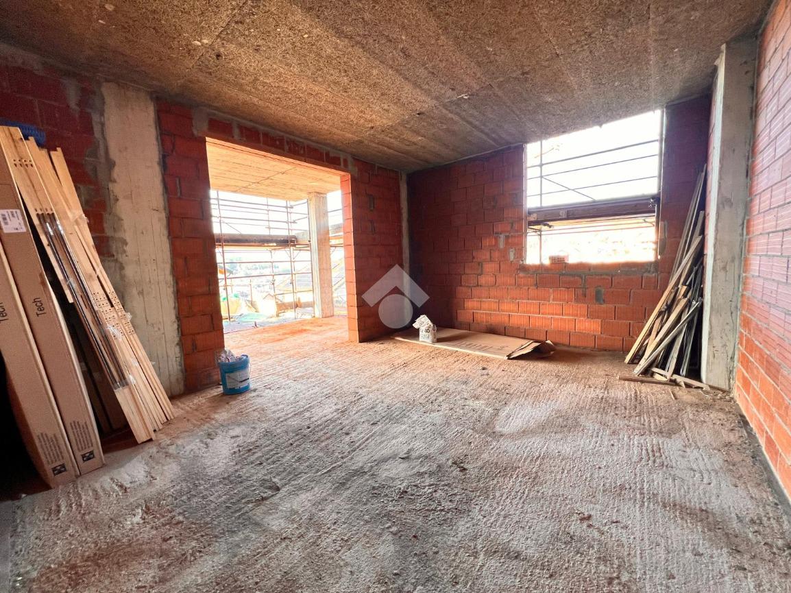APPARTAMENTO AL PIANO TERRA CON GIARDINO E ASCENSORE. CONSEGNA ENTRO 18 MESI DAL RILASCIO DEL PERMESSO DI COSTRUIRE. Il progetto prevede un appartamento circondato sui tre lati dal giardino privato di quasi 250 mq, balcone e taverna. La distribuzione interna degli spazi può essere personalizzata in base alle esigenze dell’acquirente, così come la scelta delle finiture per completare l'appartamento che sono inclusi nel prezzo. Possibilità di realizzare fino a tre camere da letto sul piano e doppi servizi igienici. Ogni alloggio sarà dotato di impianto fotovoltaico, riscaldamento autonomo con pompa di calore e sistema di Ventilazione Meccanica controllata puntuale (VMC) che permette di cambiare l’aria in maniera costante senza dispersione termica, per garantire comfort abitativo, aria salubre e un buon risparmio energetico. È possibile acquistare separatamente un box auto doppio al piano interrato al prezzo di € 28.000. Sulla nuova costruzione è inoltre prevista la detrazione fiscale del 50% sul costo di costruzione dell’autorimessa. L’edificio, privo di barriere architettoniche, è progettato per garantire il massimo comfort abitativo e un’elevata efficienza energetica. La struttura sarà realizzata con cappotto termico in Neopor da 14 cm, isolamento acustico ad alte prestazioni e serramenti con vetri basso emissivi, studiati per assicurare un eccellente isolamento termoacustico e una significativa riduzione dei copertura è previsto un avanzato sistema isolante con lana di vetro Superbac, microventilazione e barriera al vapore, soluzioni che contribuiscono a mantenere un clima interno confortevole in ogni stagione e a ottimizzare le prestazioni energetiche dell’edificio. Grazie all’utilizzo di materiali e impianti di ultima generazione, l’immobile raggiungerà la classe energetica A4, assicurando comfort interno, consumi ridotti e bassi costi di gestione, con un minore impatto ambientale. Il progetto è pensato per chi cerca una soluzione funzionale, efficiente e inserita in un contesto tranquillo e panoramico. Esclusivo vantaggio: le spese per la sottoscrizione del contratto preliminare innanzi al notaio saranno sostenute integralmente dall'agnezia immobiliare.