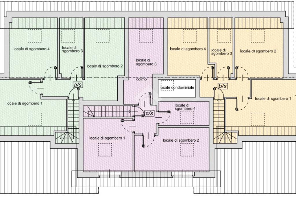 Una scala interna conduce al piano sottotetto, luminoso e con altezze generose, dove è possibile realizzare fino a tre camere da letto e un secondo servizio igienico.