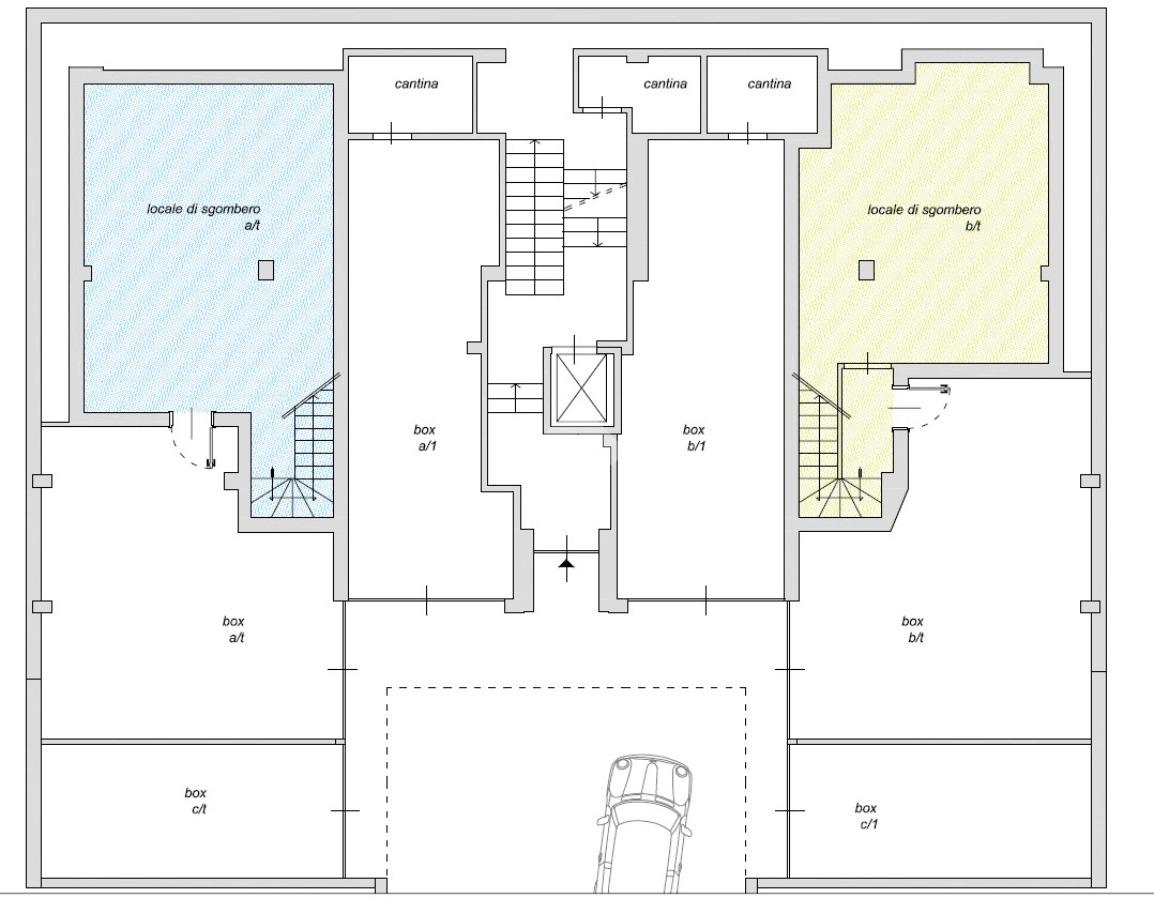 È possibile acquistare separatamente un box auto singolo al piano interrato al prezzo di € 20.000. Sulla nuova costruzione è inoltre prevista la detrazione fiscale del 50% sul costo di costruzione dell’autorimessa.